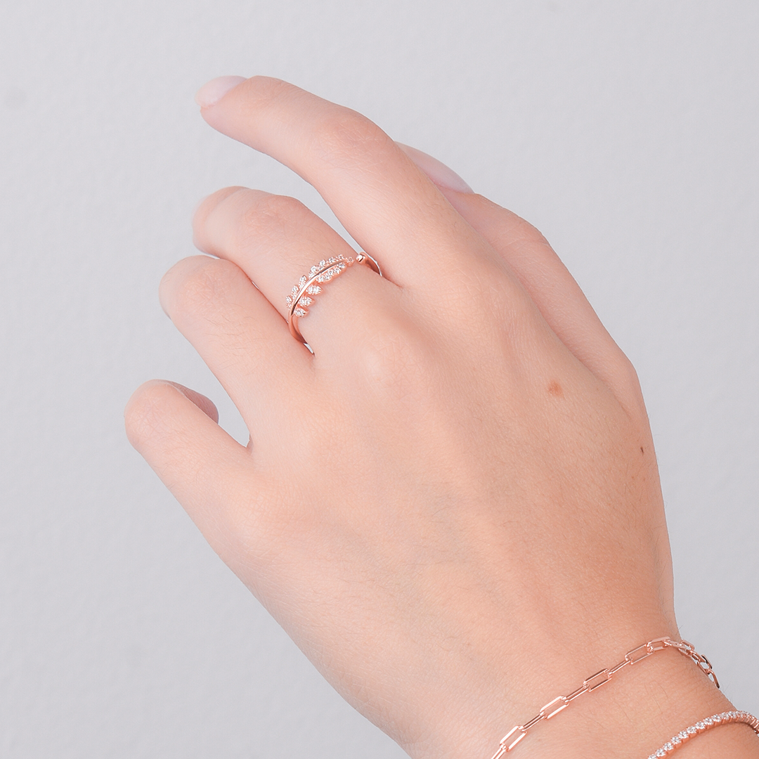 Descubre la belleza única de nuestro Anillo Delicado de Pluma. Hecho con plata de ley 925, este anillo está disponible en dos versiones: plata y oro rosa de 14K. Con un diseño encantador de Pluma que rodea el dedo, este anillo añade un toque de elegancia a tu estilo. Las micro incrustaciones de zirconia cúbica blanca le dan un brillo sutil. Además, su tamaño ajustable te asegura un ajuste perfecto. Puedes lucir este anillo solo para un look sofisticado o combinarlo con otros anillos para un estilo más personalizado. 💖✨