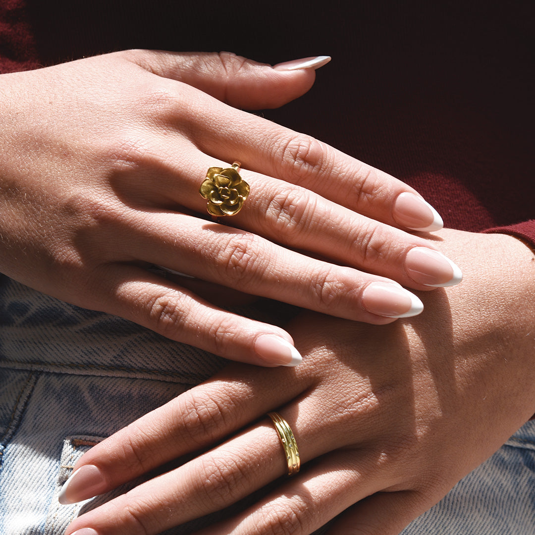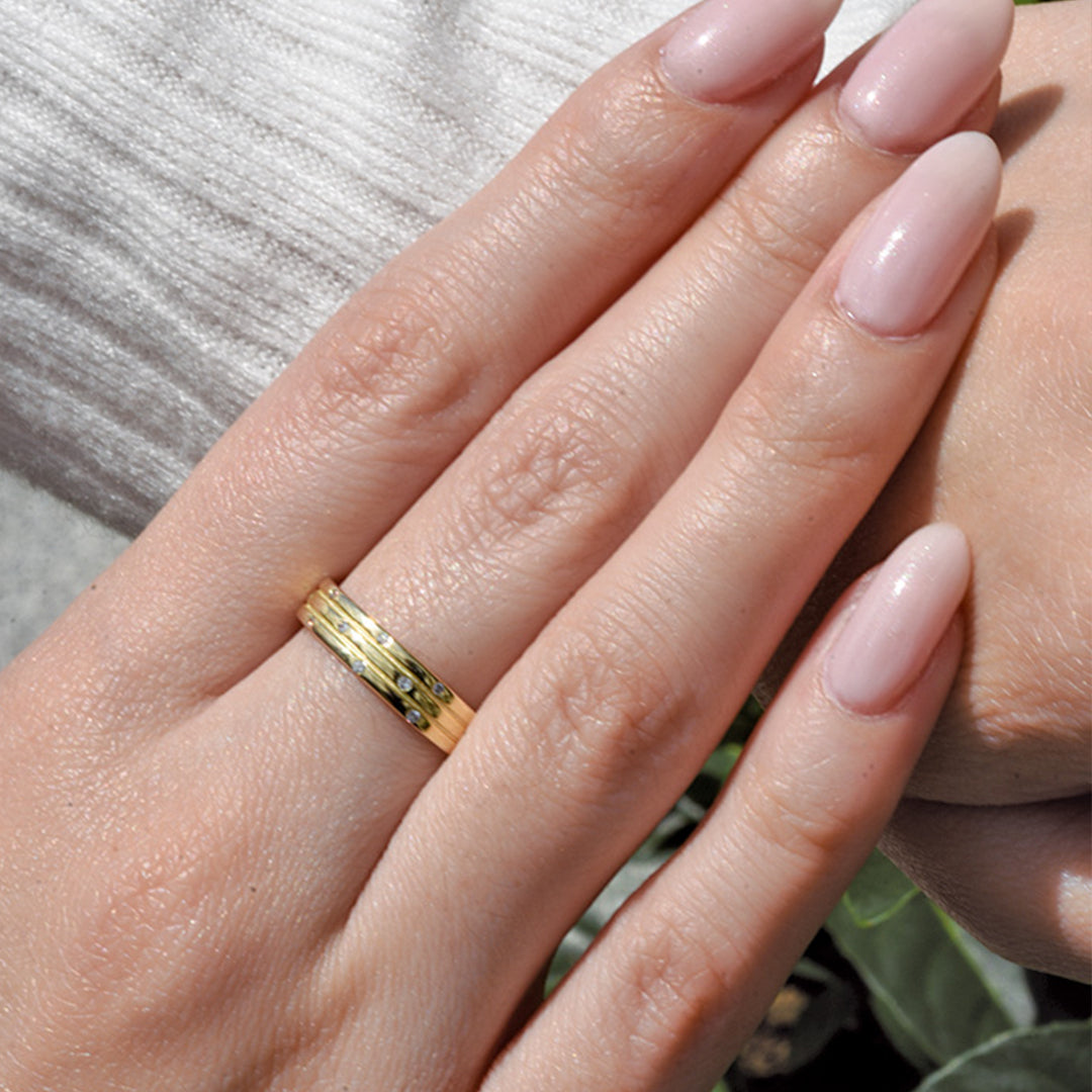 Anillo Elegante de Puntos de Luz Dorado