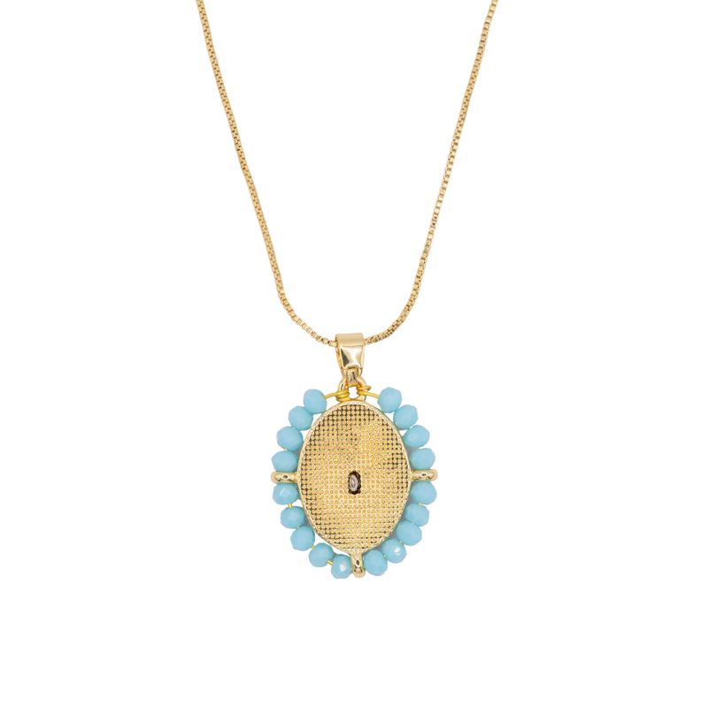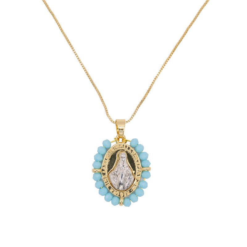 Collar de Virgen María Rodeado de Perlas Turquesa
