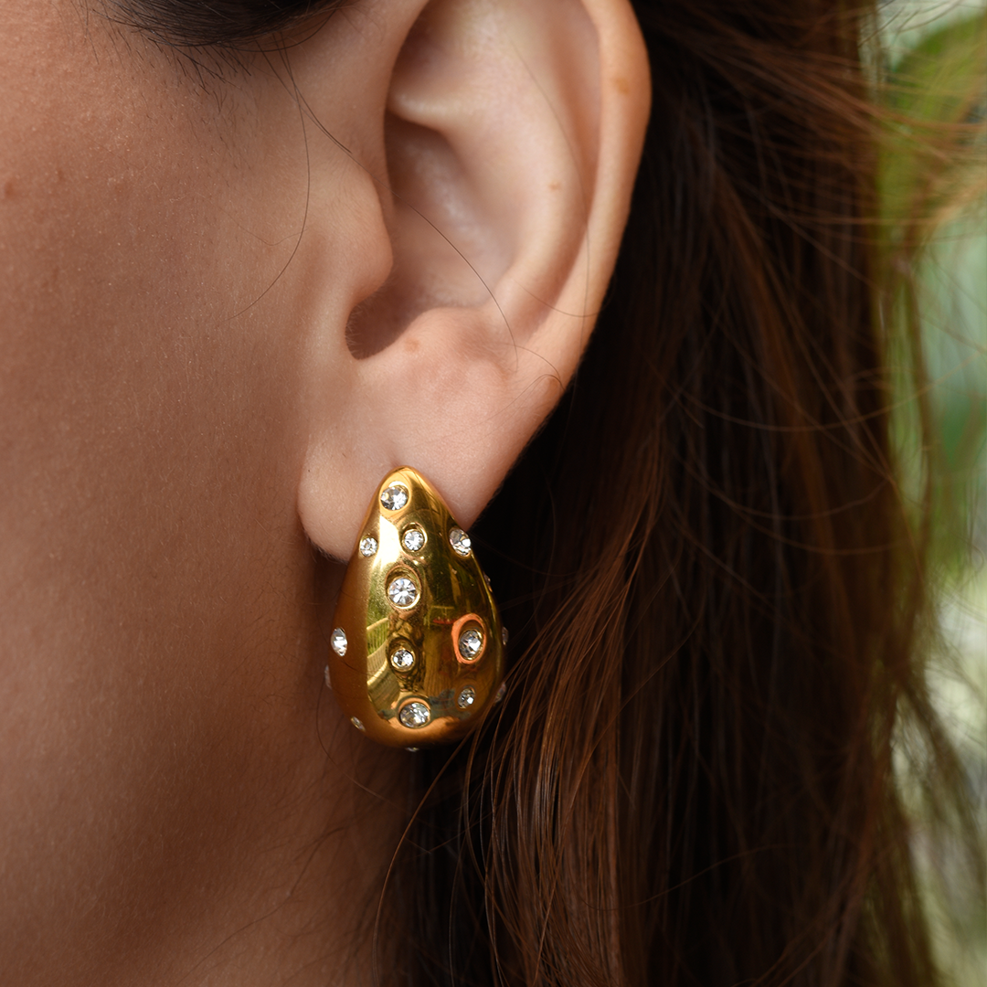 Aretes de Gota con Zirconias Dorados
