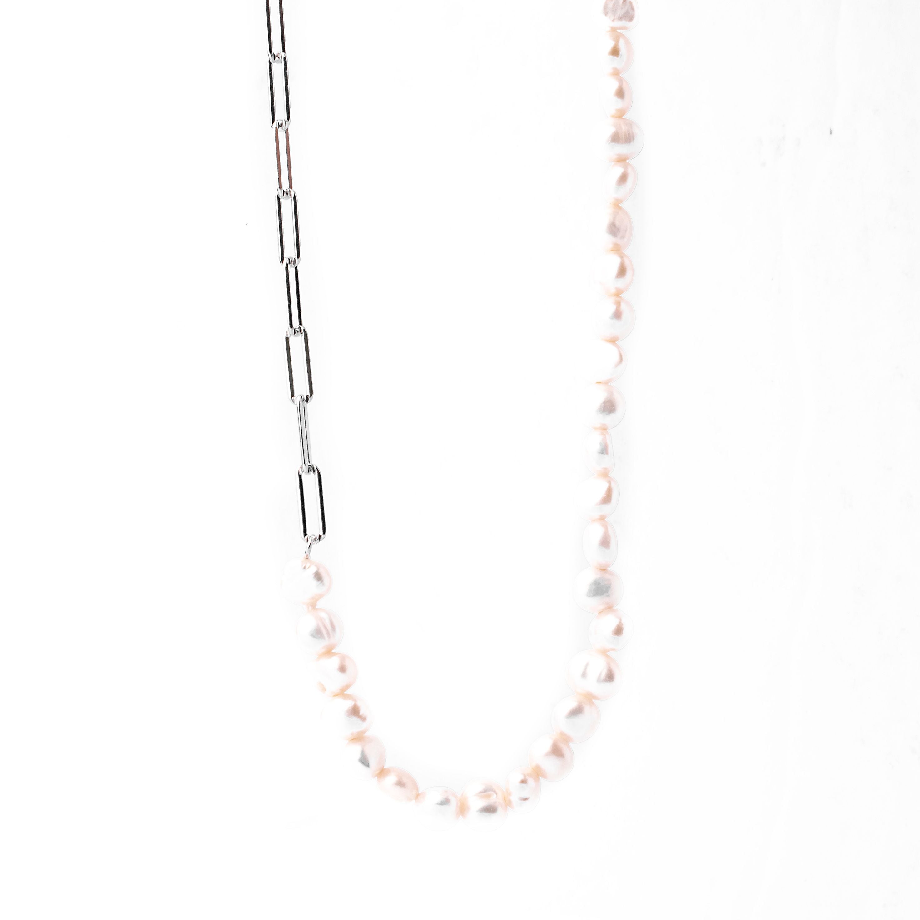Asymmetrical Paperclip and Pearl Necklace