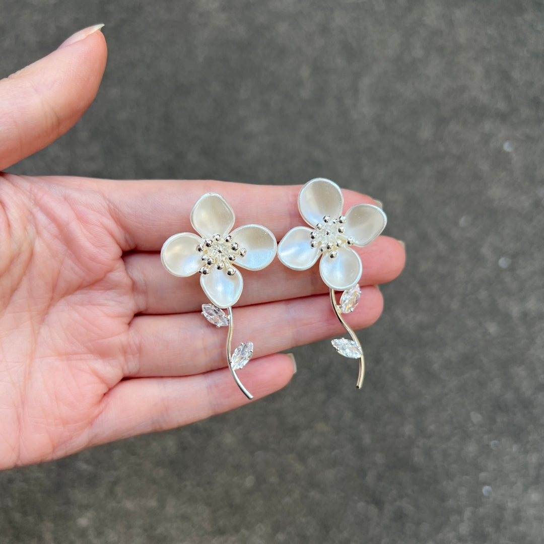 Aretes Elegantes de Flores con Hojas Colgantes
