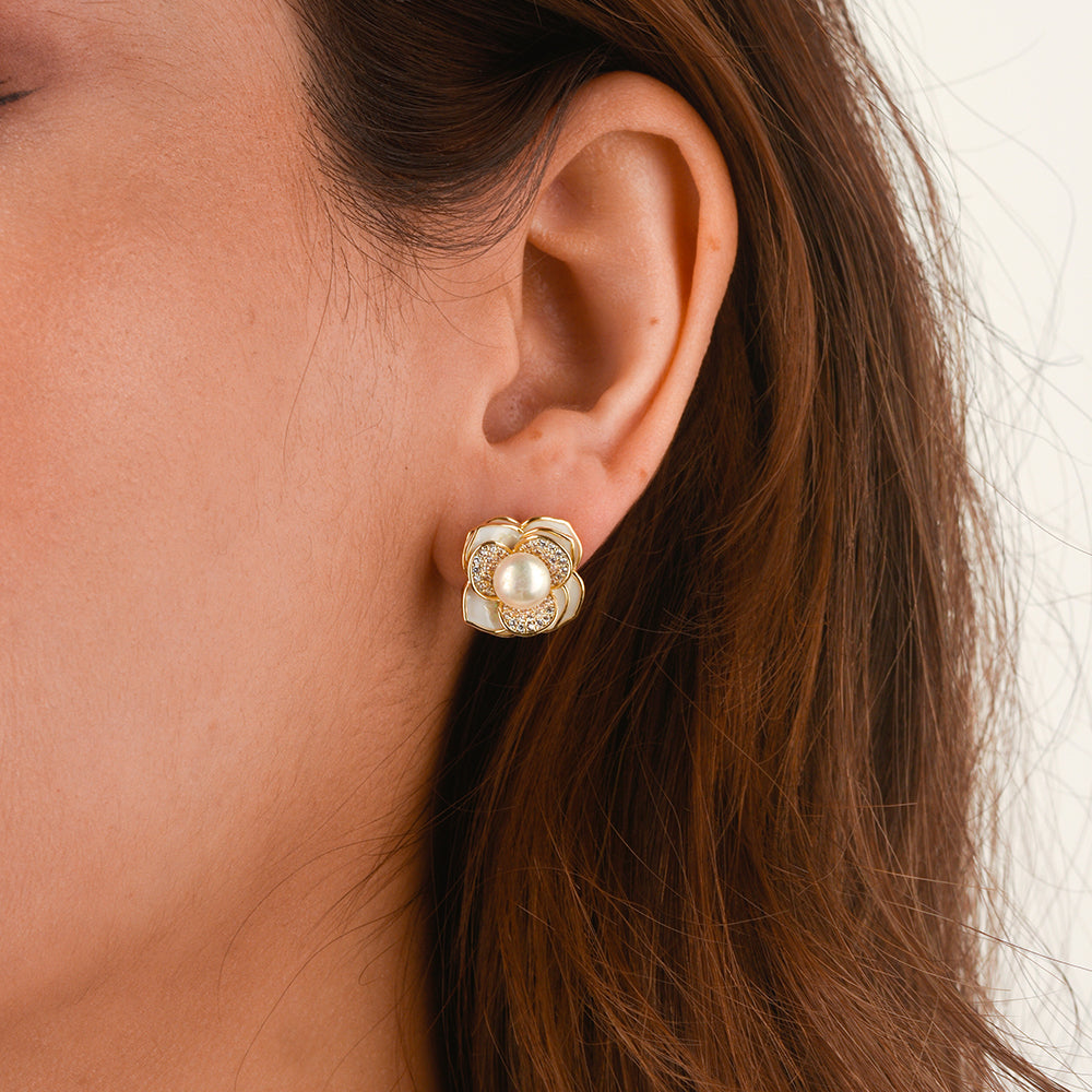 Mother of Pearl Shell Rose Earrings
