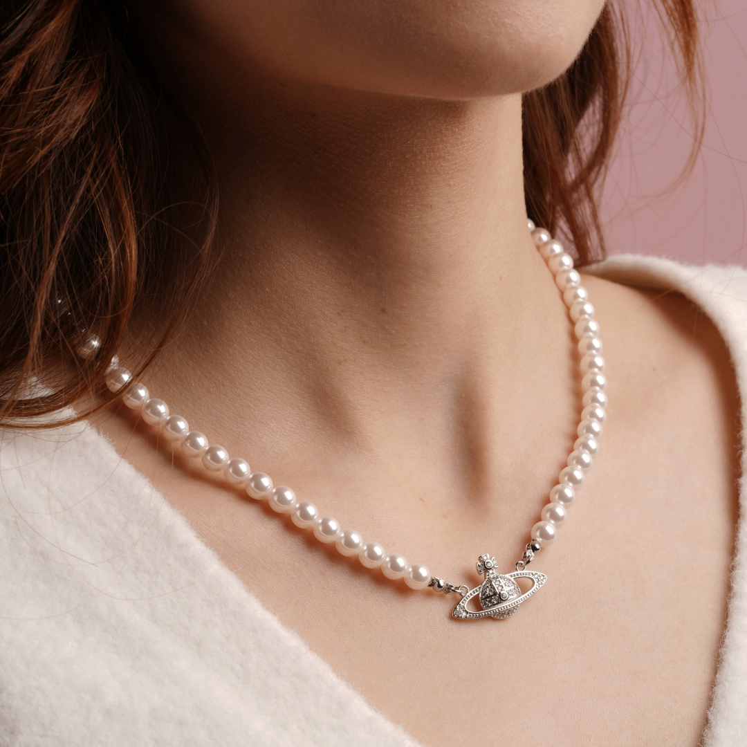 Collar de Perlas Dije Saturno
